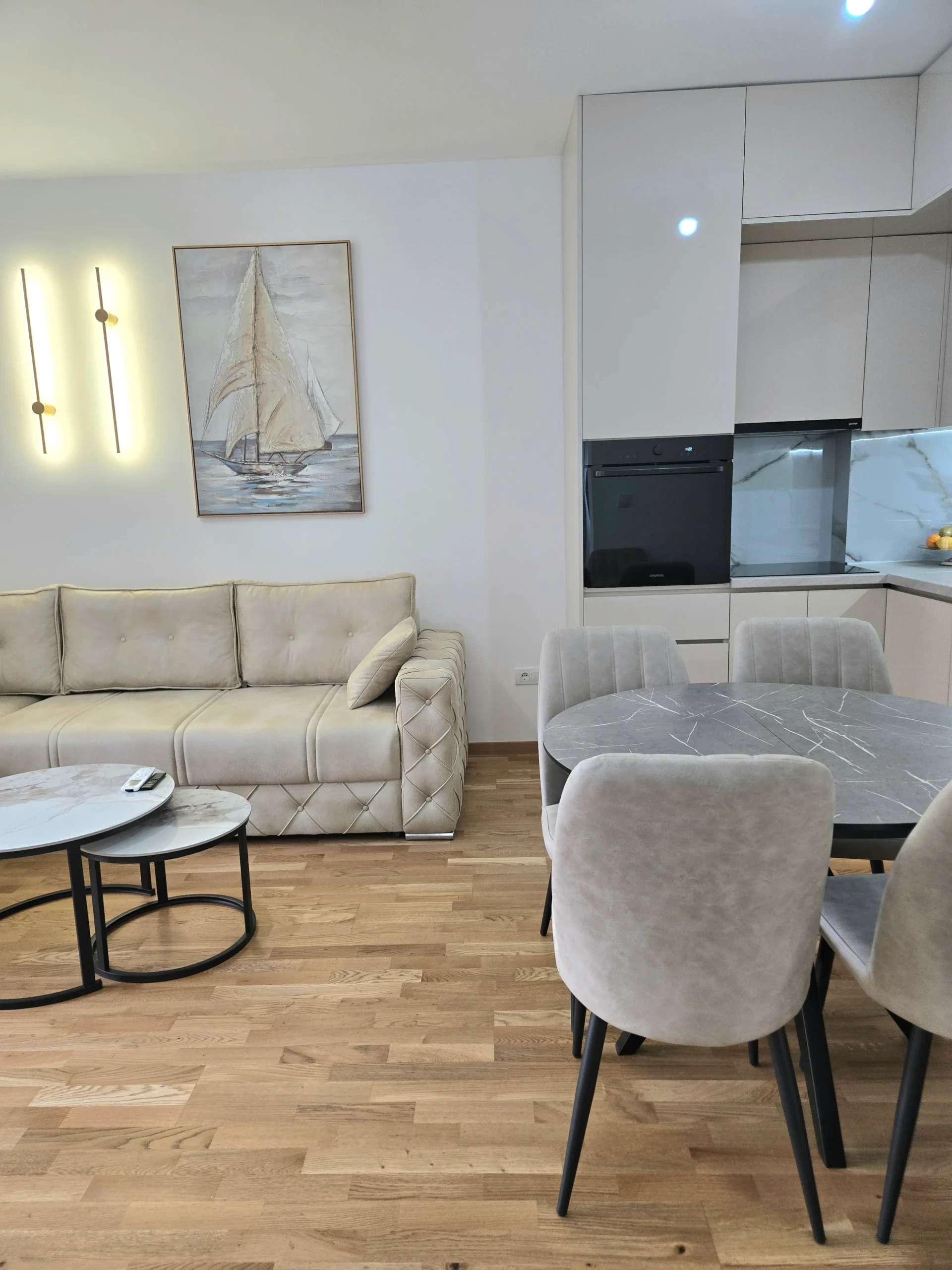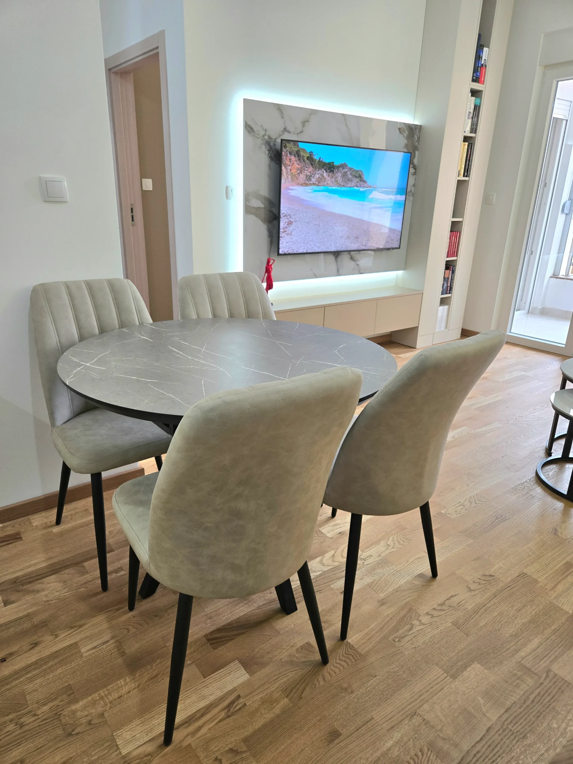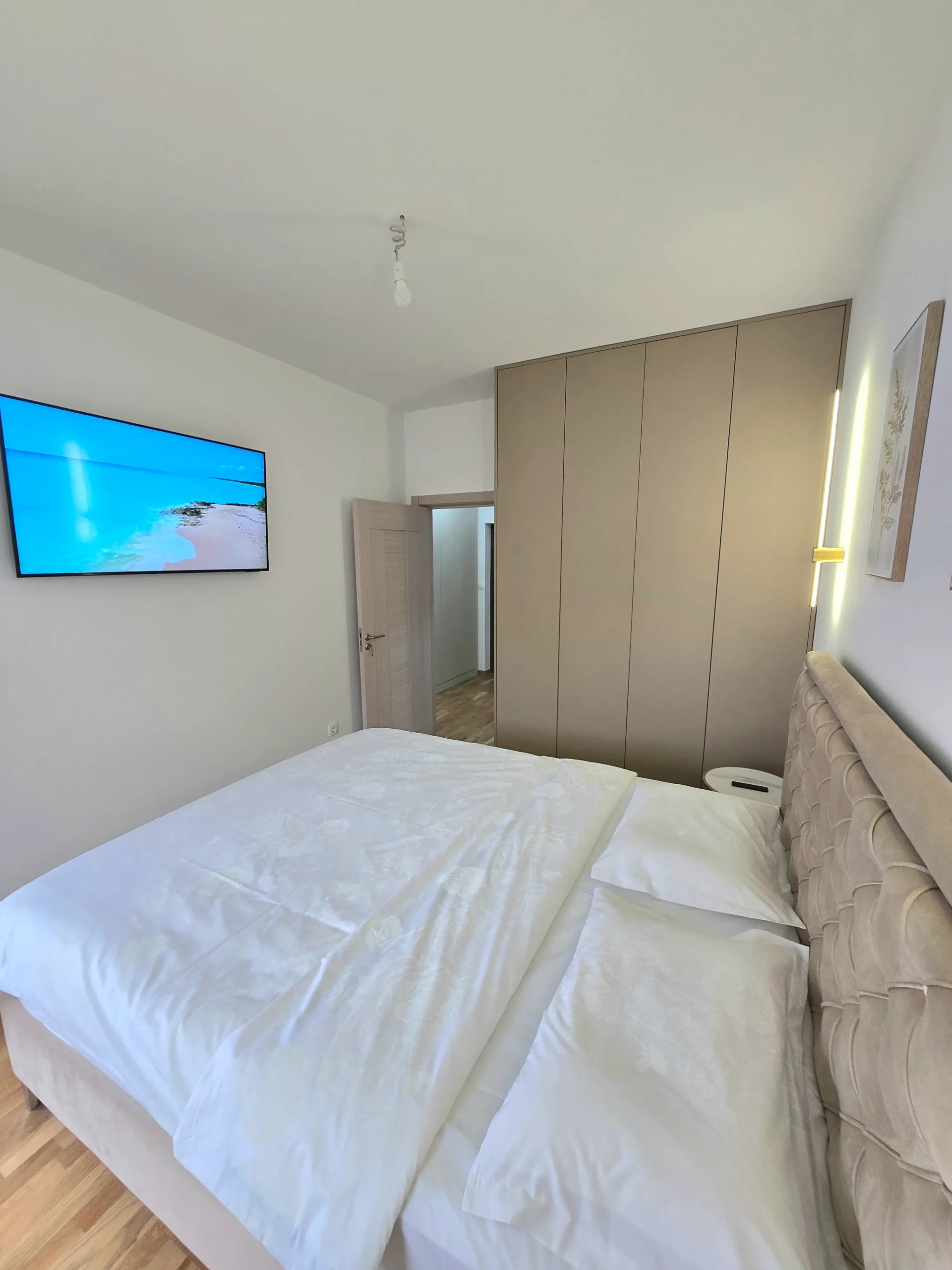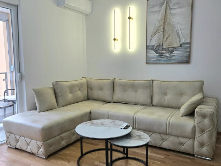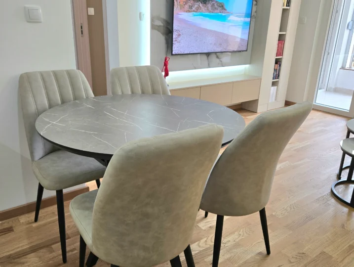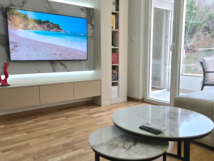 Apartman Stefan Bečići osmišljen je za savremene goste – savršen za porodice, grupe prijatelja ili parove koji traže luksuzni smještaj u Bečićima. Svijetle prostorije stvaraju ugodan ambijent, a pametno organiziran prostor spaja modernost s osjećajem luksuznog doma uz more.
